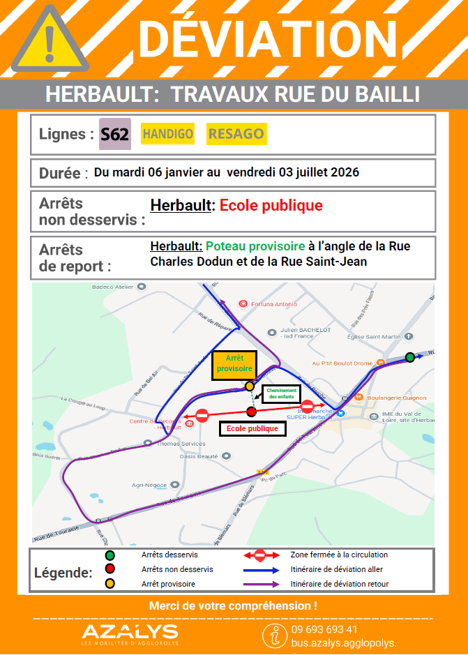 Arrêt déplacé HERBAULT : TRAVAUX RUE DU BAILLI
