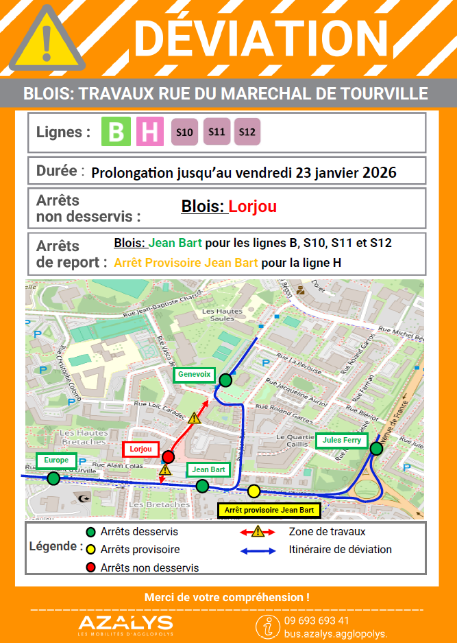 Arrêt déplacé BLOIS : TRAVAUX RUE DE VILLOISEAU & CHEMIN DE LA CHARONNIERE